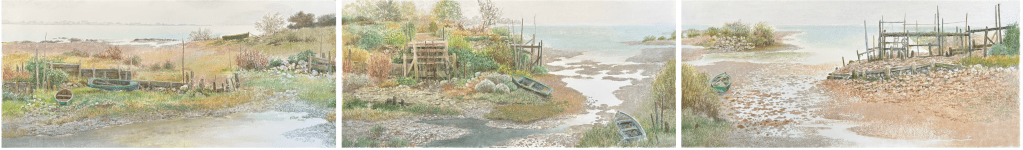 …..Jean-Claude Courtat est né en 1941 à Montrouge (hauts de seine)- il pratique très tôt le dessin et la peinture- à partir de 1963 il enseigne dans l’Education nationale le dessin et les arts plastiques- parallèlement à son métier de professeur il peint; à l’huile, à l’acrylique, au pastel………….. ce sont d’abord des oeuvres figuratives, surtout des paysages marins, puis vient une période abstraite (de 1963 à 1973) qu’il expose dans les salons: « Comparaisons »-« Grands et jeunes d’aujourd’hui », et est alors sociétaire du Salon d’automne au Grand Palais- en 1973 exposition personnelle d’oeuvres non-figuratives Galerie du Haut Pavé à paris … de 1973 à 1983, années d’expérimentations et de doute, la pratique de la photo et du modélisme le ramène à un besoin de réalisme, de figuration et au goût du détail; cela l’oriente vers un style très classique, naturaliste,….qu’il définit volontiers comme « d’avant la modernité »! en 1990 exposition personnelle de pastels Galerie de Staël rue Royale à Paris- en 1997 exposition de pastels Galerie Hammer à New York- la saison suivante galerie Etienne Sassi avenue Matignon à Paris- puis en 2006 Galerie « le Jardin dans l’art » rue de l’université- Jean-Claude peint surtout des paysages de jardins, des natures-mortes de produits du potager ou du verger….d’où sa présence obligée, assidue, dans les fêtes de jardins fameuses aux Châteaux de Courson, de Saint Jean de Beauregard, de Coppet, d’Hex, du Lude, à l »Art du jardin » au parc de SaintCloud et au Grand Palais… ce qui l’éloigne du circuit des galeries….et pour une clientèle privée il réalise un bon nombre de « portraits » de jardins…. il y a aussi ses pastels et peintures de marines ( des marées basses, « atlantiques », très peu montrées jusqu’ici ) et des arbres…des arbres….